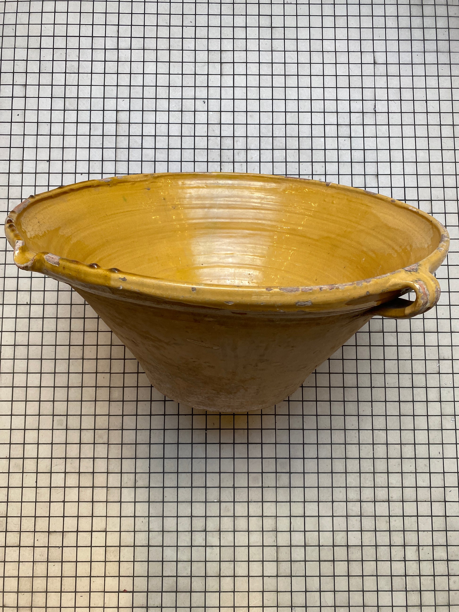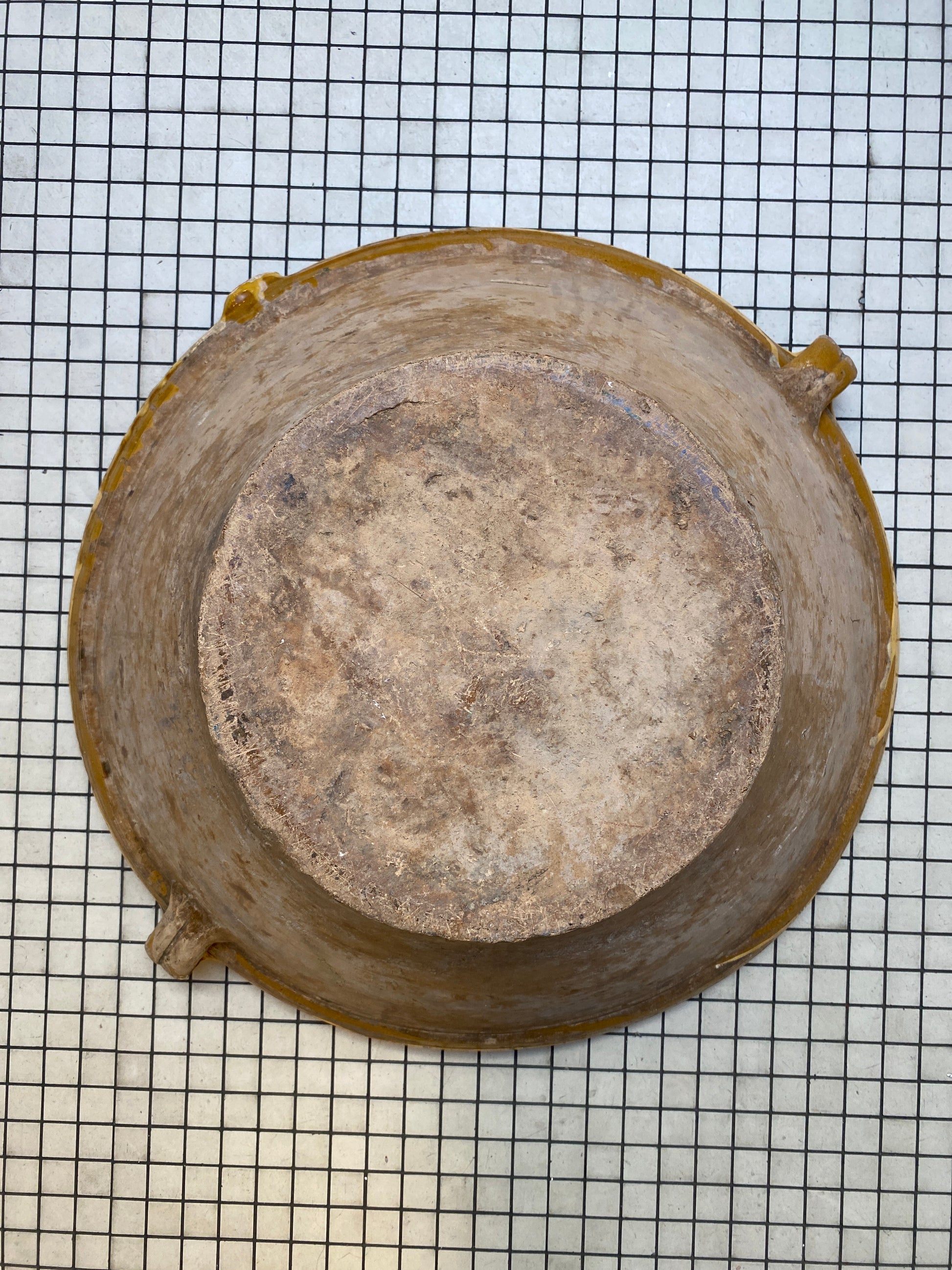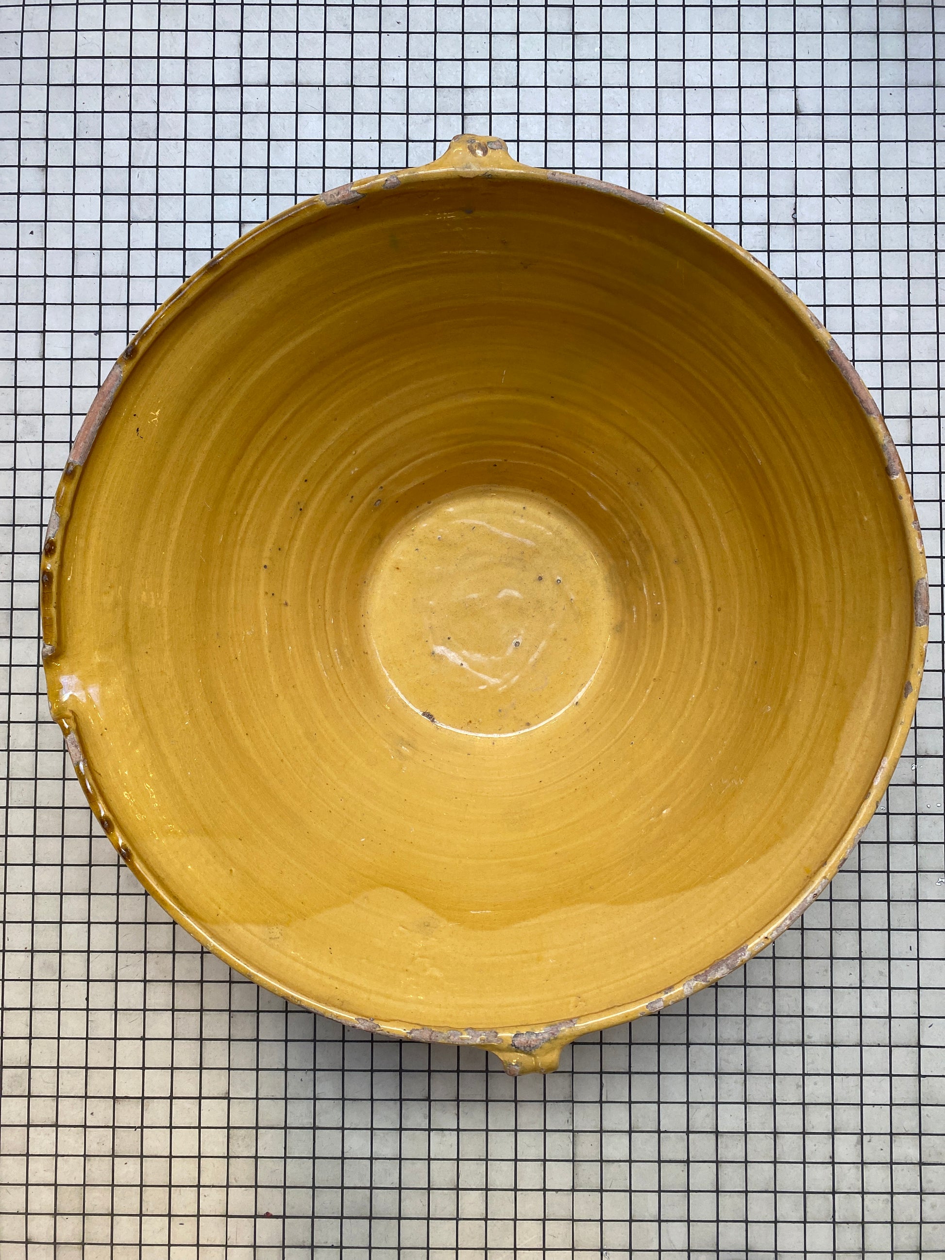 A beautiful late 19th–early 20th century French tian in its classic golden glaze, an impressive 56 cm wide by 24 cm high. Once used in Provence for preparing and baking, it now makes a striking decorative piece