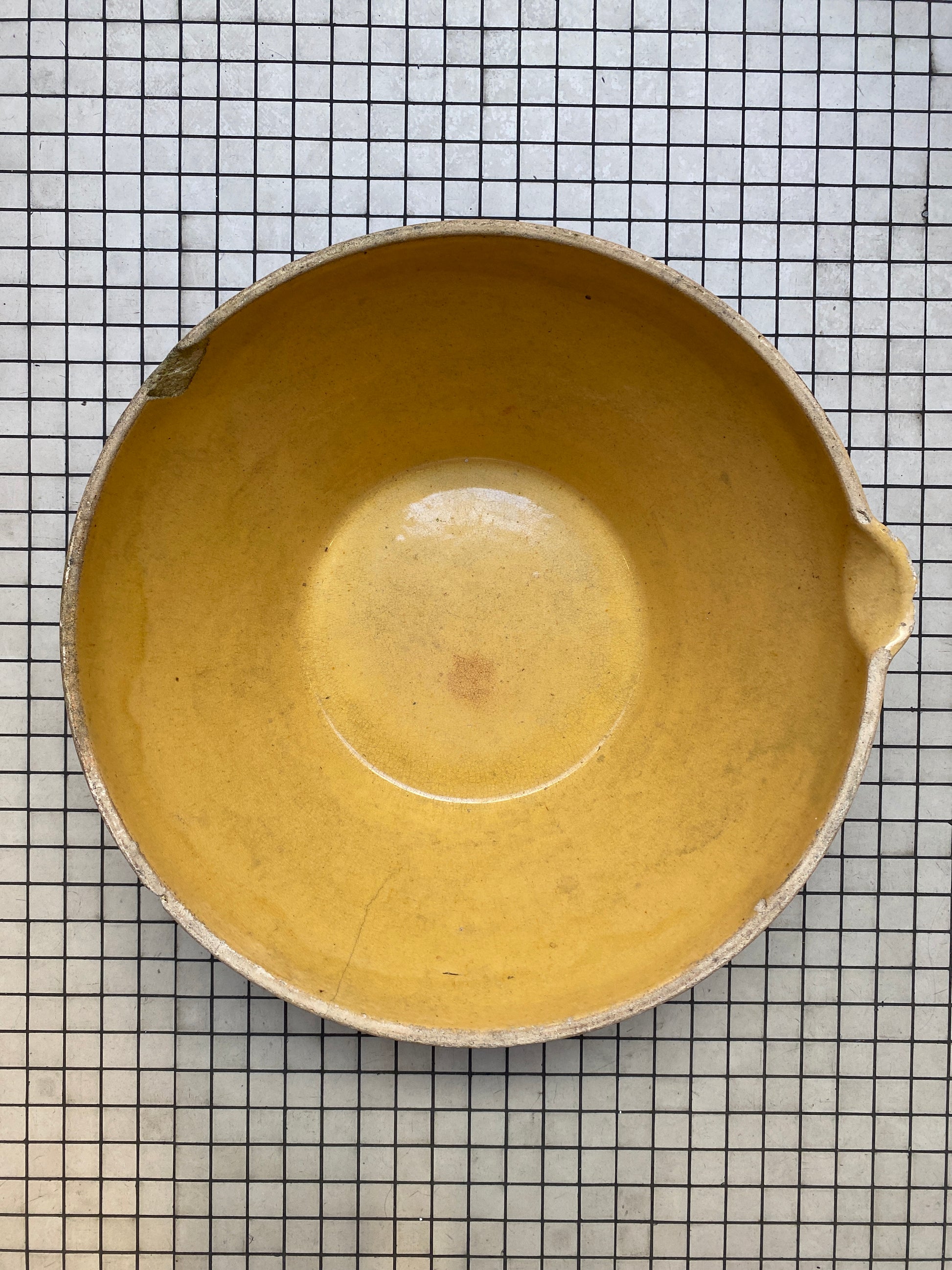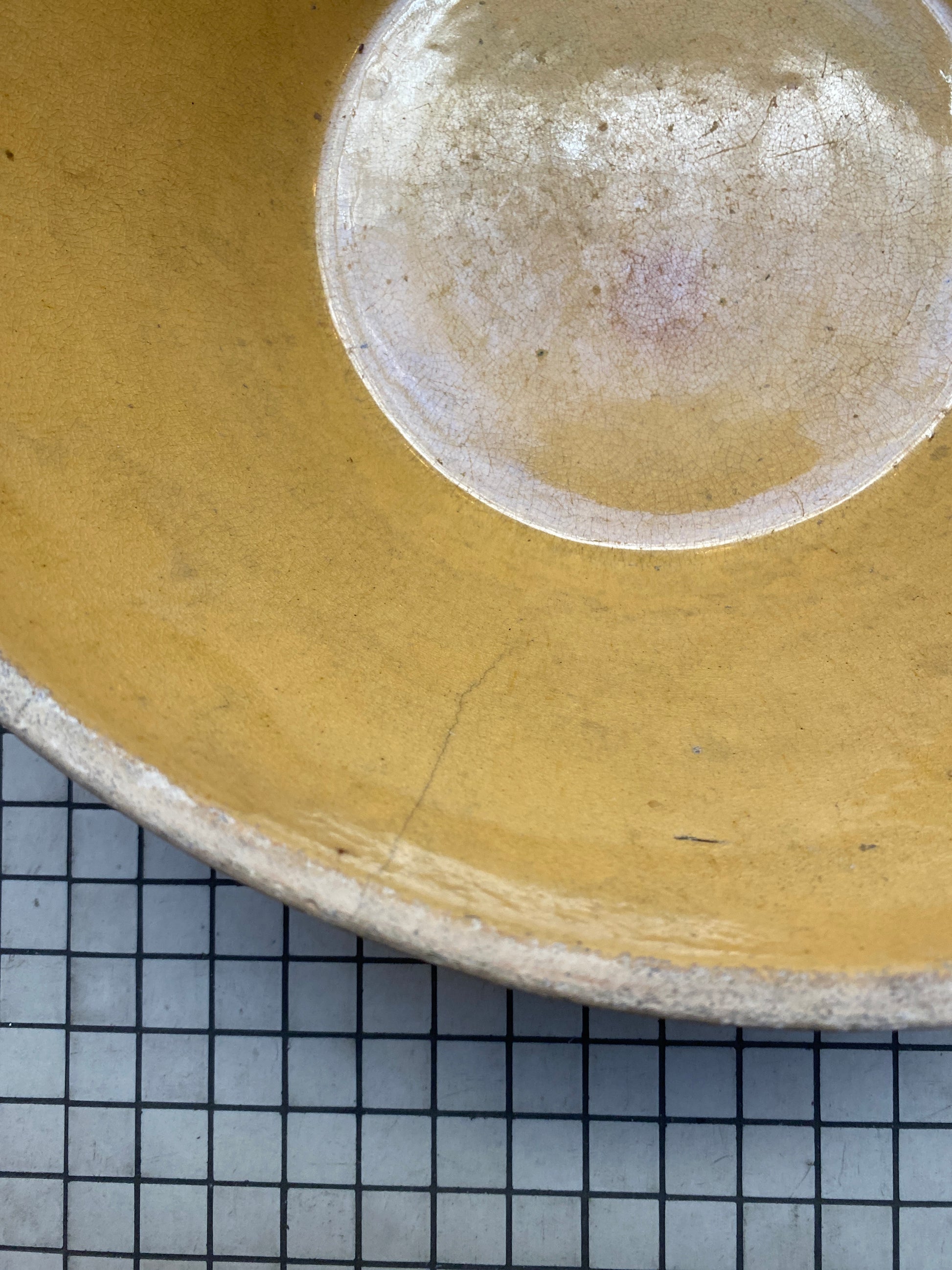 A classic French tian in warm yellow glaze, once used in farmhouse kitchens for preparing and serving meals.